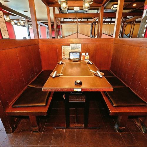 仕切りのあるテーブル席はデートに最適。家族連れや友人同士でも、周囲に気兼ねなく食事を楽しめる。
